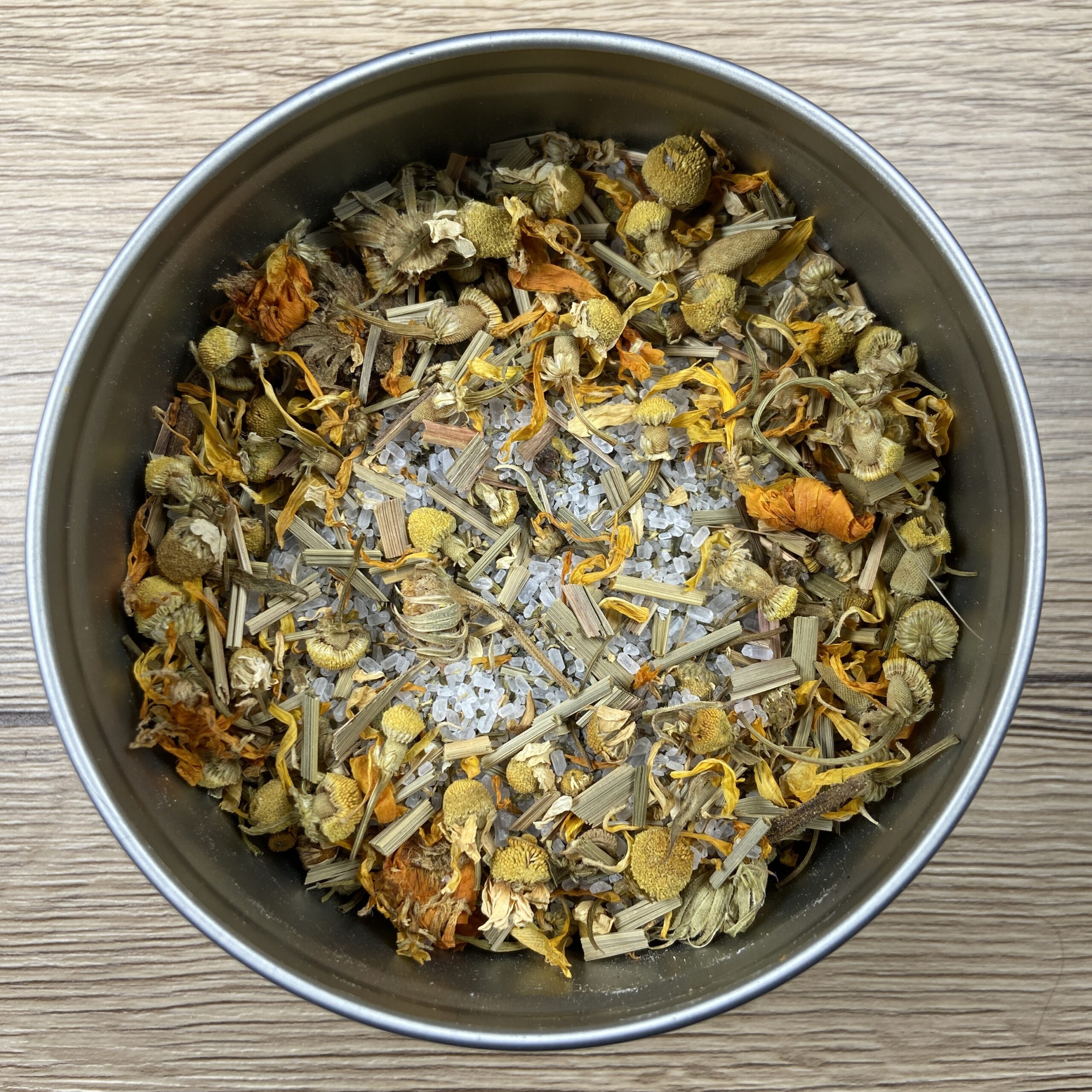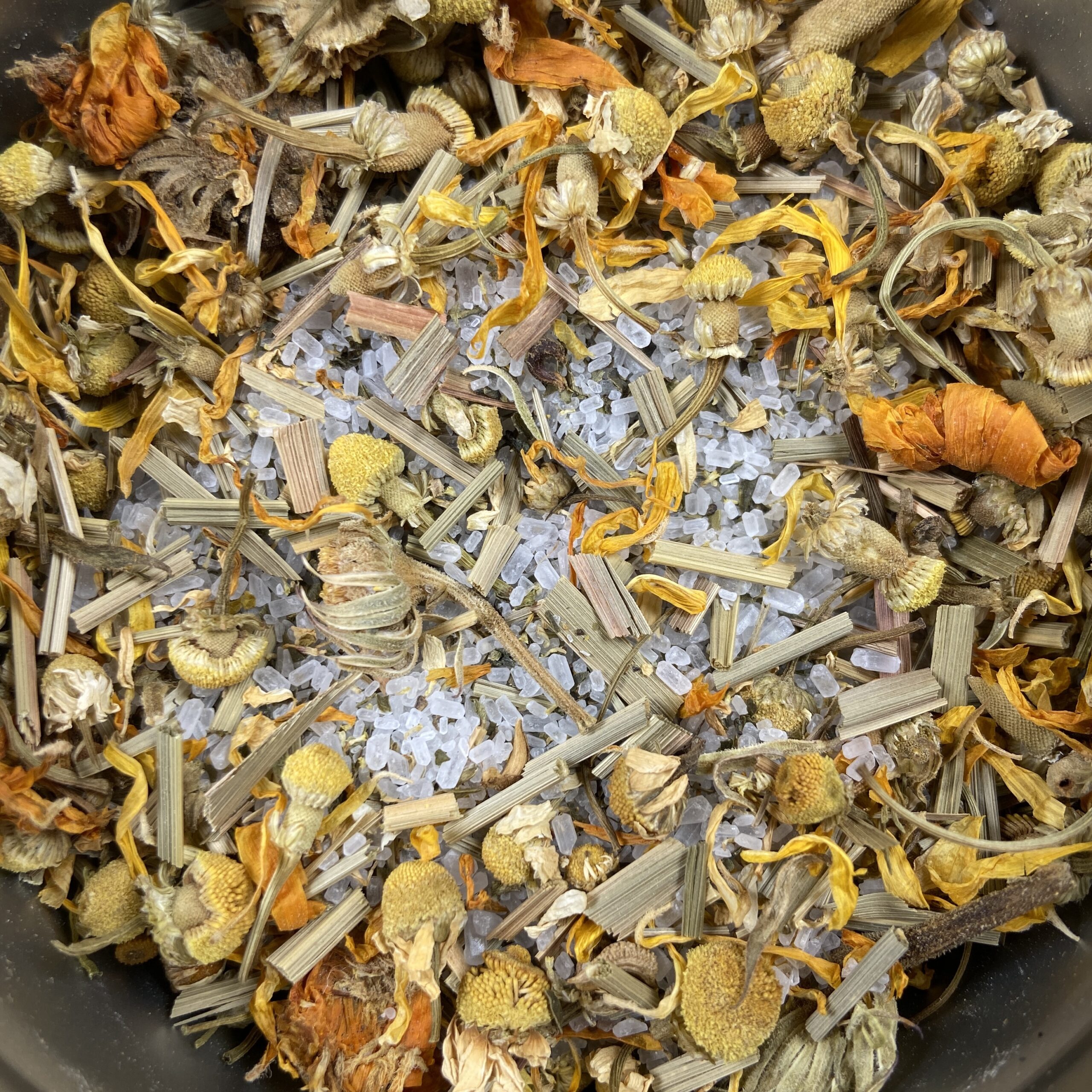 Ingredients: green tea, chamomile, calendula flowers, lemongrass, epsom salt